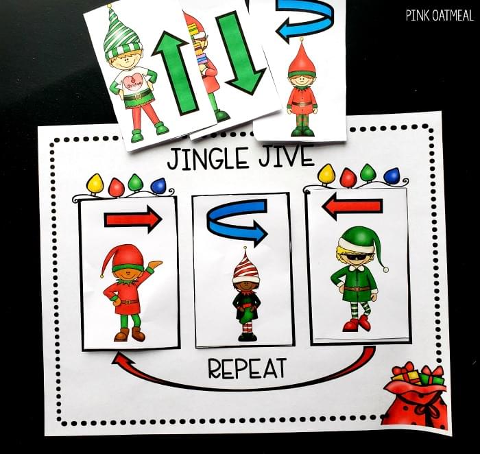 Are you looking for a fun way to add movement and physical activity with a holiday theme? Need Christmas gross motor ideas?  How about dancing like elves?  The Jingle Jive is a fun game to create dancing routines during the holidays.  The Jingle Jive is a great way to move and work on motor planning at the same time.  The even better news is that this game is available for free from Pink Oatmeal!